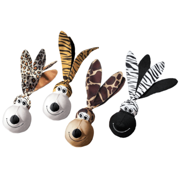 Wubba Floppy Ears are fun, interactive fetch and retrieve toys. The long, floppy ears are easy to pick up and throw for a great game of fetch. Dogs love to squeak and shake Floppy Ears back and forth for endless fun. Durable; reinforced nylon fabric Two balls inside – a tennis ball on top and squeaker ball below These toys come in 4 different varieties. As we are unable to select which ones we get from our supplier you will receive this product in one of the variations in the product photo.