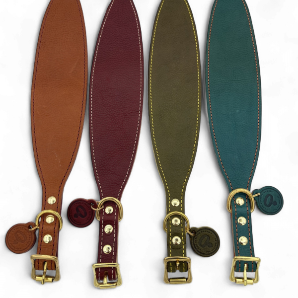 Available in a range of rich, countryside-inspired colours, each collar is made locally with care — perfect for dogs who appreciate quality and classic style.